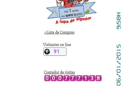 Pois é, ontem, vi o contador de visitas com muitos visitantes, e pensei...o blog deve de estar em destaque, mas cliquei no ícone dos blogs e vi que não estava. Achei estranho. Fiquei um pouco intrigada. Cheguei a pensar que o contador devia de estar avariado.