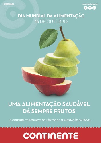 Hoje é comemorado o dia mundial da alimentação, e como tal, o continente oferece a todos os seus clientes frutas, no caso do continente onde trabalho, maçãs! Esta iniciativa, visa promover e sensibilizar a população para a importância do consumo diário de fruta ou legumes e ajudar nas escolhas mais saudáveis para o dia-a-dia de toda a família.