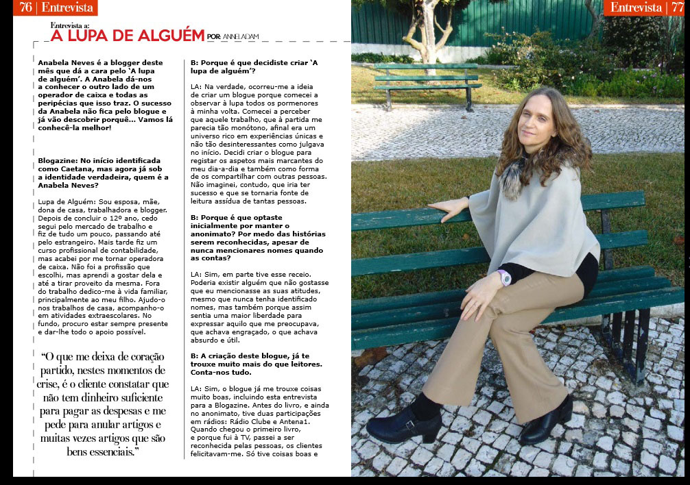 Obrigada à Madalena, pela simpatia, pela escolha das perguntas, pela oportunidade de divulgar o meu blogue e por mais uma vez, poder falar da profissão de operadora de caixa. Obrigada também a toda a equipa.