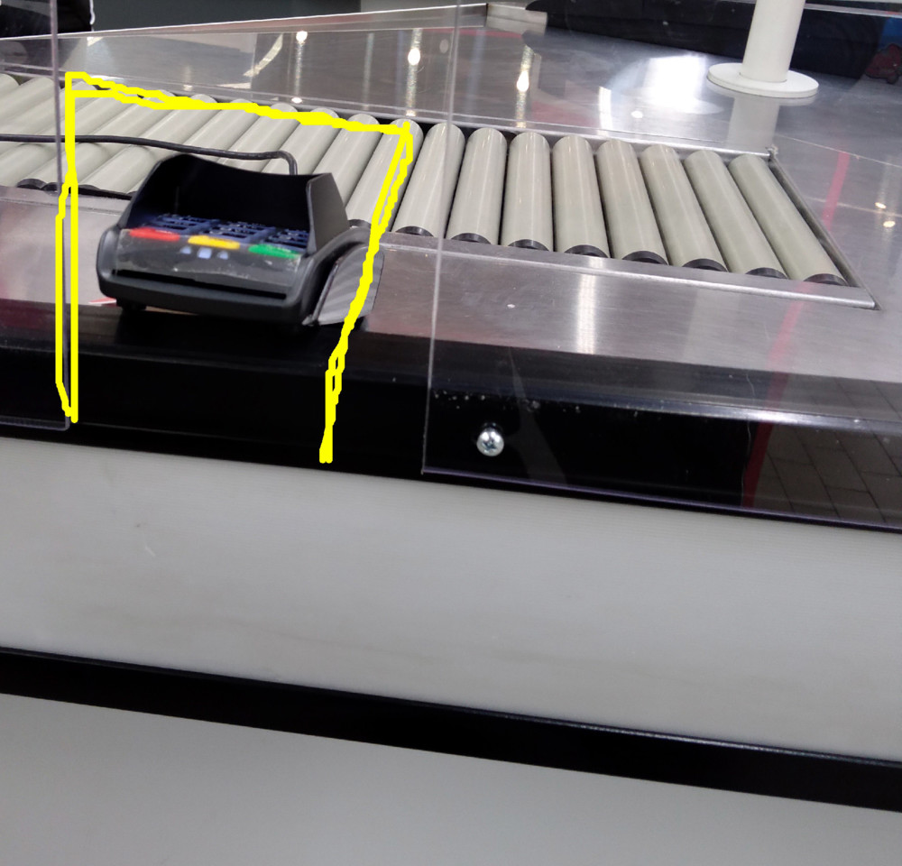 Andei semanas e semanas a tentar que os clientes fizessem o pagamento pela dita abertura/janela do acrílico. Já estava no bom caminho. Entretanto a dita janela foi corrigida por causa do multibanco, e a abertura ficou mais pequena e mal lá cabem as nossas mãos para entregar troco, talões. Apenas dá para pagamento com multibanco.
