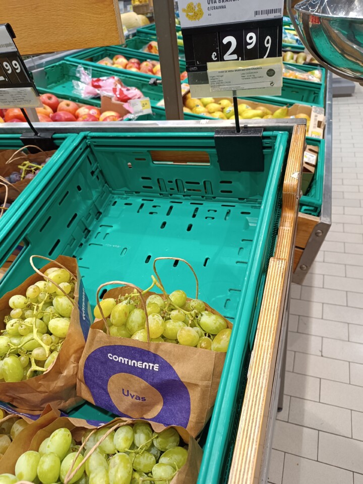 Em relação ás de cor branca, houve uma altura que tínhamos, uva branca com grainha e uva branca sem grainha. No continente onde trabalho, sendo continente modelo, a pesagem é feita na caixa, por isso temos  de ter algum conhecimento, em frutas e legumes.